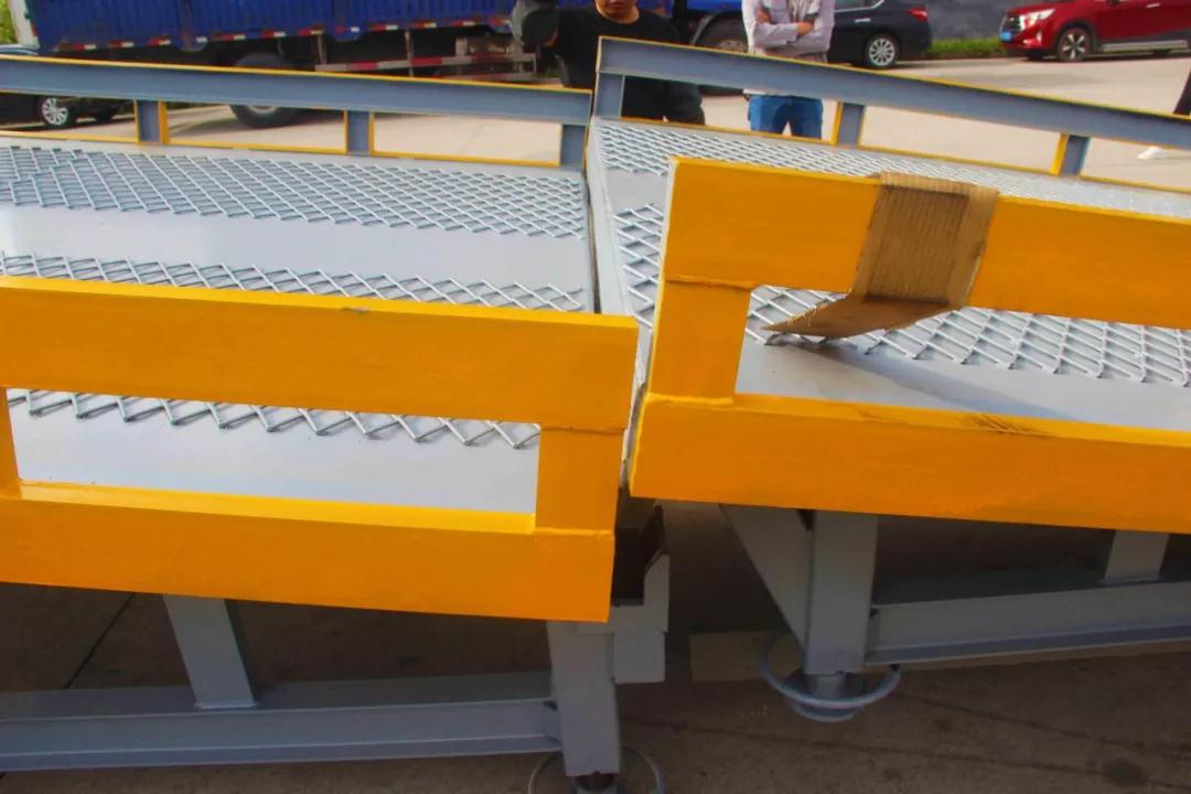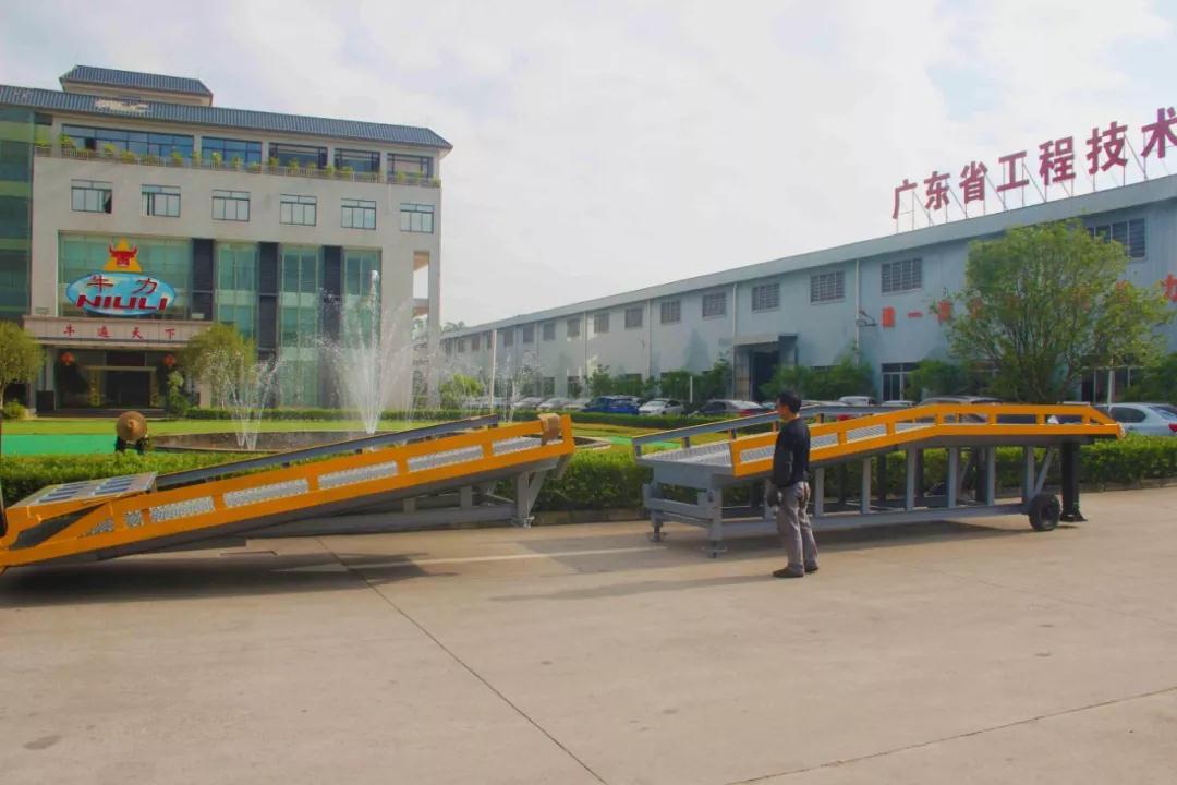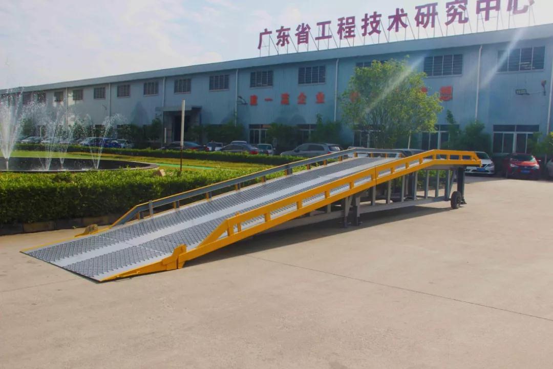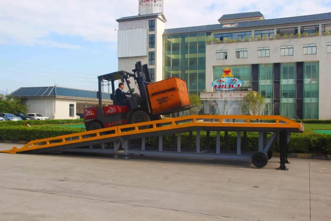折疊式登車橋是與叉車配合使用的貨物裝卸輔助設備,在地面和車輛之間搭起橋梁,可根據汽車車廂的高低調節高度,叉車可以直接通過它駛入車廂內進行貨物的裝卸作業。