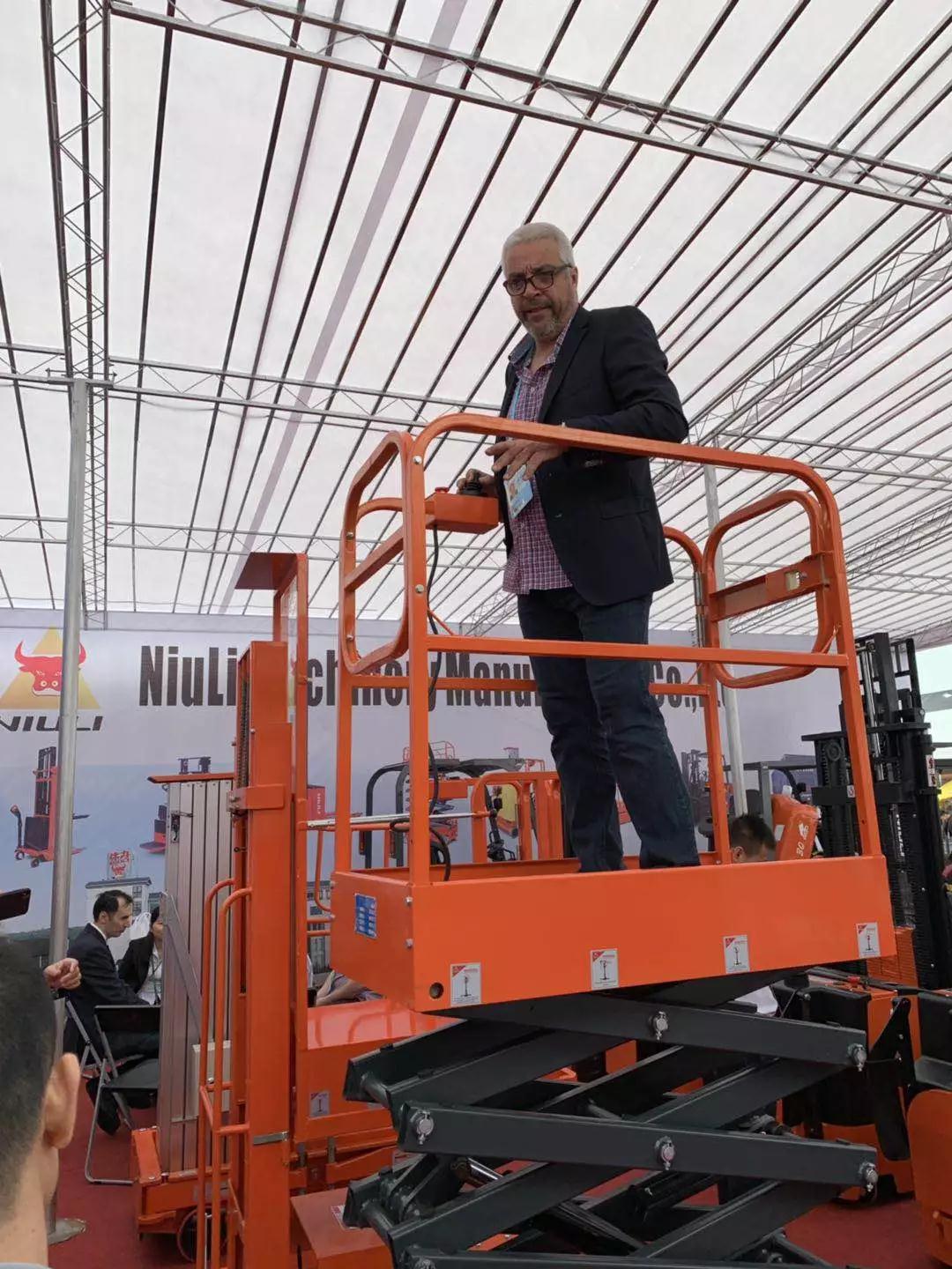 老外客戶體驗牛力3米小剪叉高空作業(yè)平臺