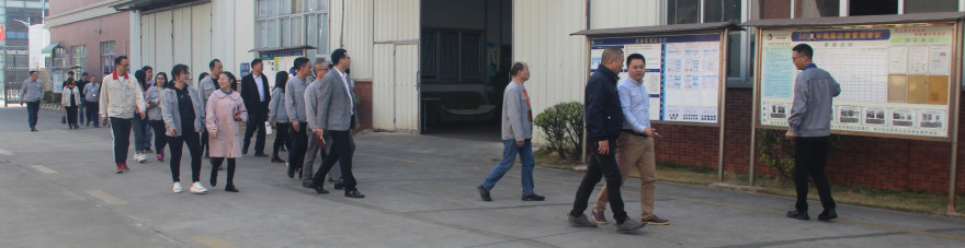隨后,學習團隊一行在牛力公司總經理吳總的帶領下繼續前往鶴山市隔朗五金實業有限公司,在隔朗五金董事長陸總的帶領下,對隔朗五金實業有限公司相關部門的標準化管理精益化管理ERP系統使用進行參觀學習。