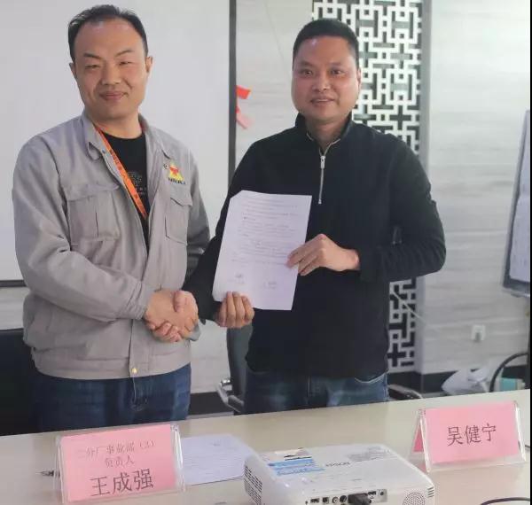 總經理吳健寧與事業四部負責人王成強簽暑協議