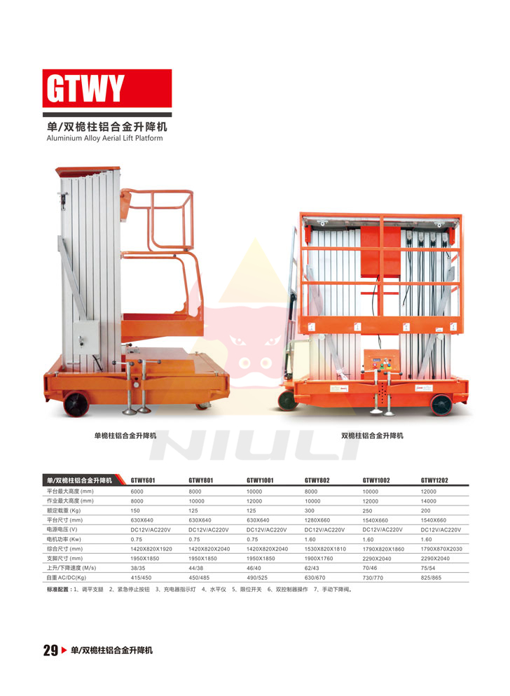 單桅柱鋁合金升降機(jī) GTWY601 GTWY801 GTWY1001