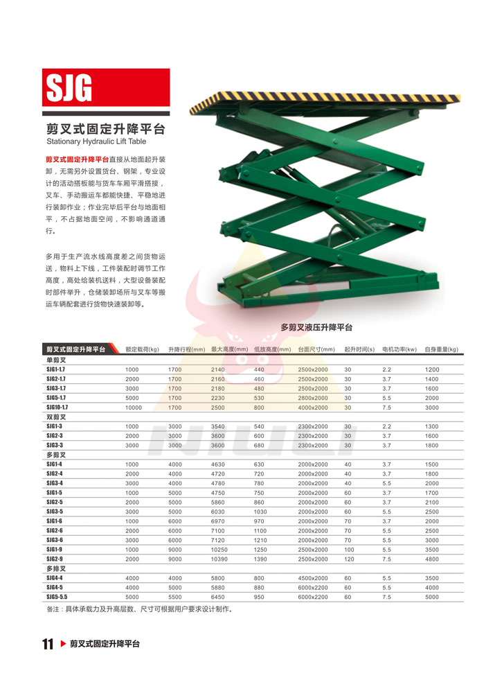 產品型號 額定載重(kg) 升降行程(mm) 最大高度(mm) 低放高度(mm) 臺面尺寸(mm) 起升時間(s)