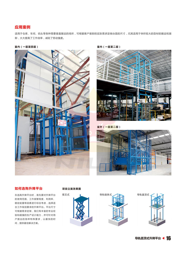 導(dǎo)軌直頂式升降平臺(tái)為無(wú)軟牽引的采用同步伸縮式油缸的液壓升降平臺(tái),直頂式平臺(tái)為硬性鏈接,無(wú)鏈接牽引,無(wú)絞軸鏈接。主要用于中高樓層及作業(yè)現(xiàn)場(chǎng)復(fù)雜的場(chǎng)所裝載升降貨物。