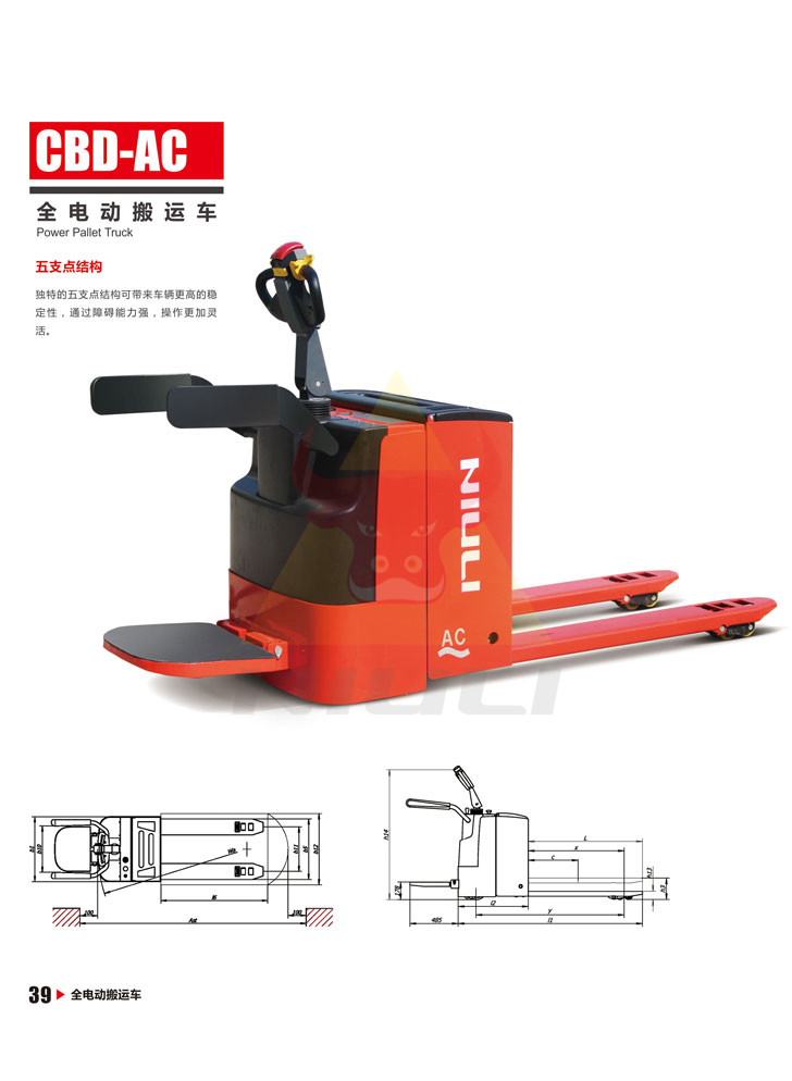 CBDN全電動搬運車又稱全電動托盤車,適用于重載及長時間貨物轉(zhuǎn)運狀況,可大大提高貨物搬運效率,減輕勞動強度,它以蓄電池為動力,采用交流無級調(diào)速控制器,液壓動力單元提升,操縱手柄集中控制,站立式駕駛。