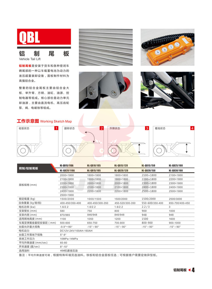 鋁合金尾板是安裝于貨車和各種密閉車輛尾部的一種以車載蓄電池為動力的液壓起重裝卸設(shè)備,面板制造材料為高強度鋁合金。
