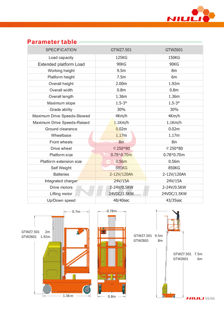 | Lifting motor(V/KW) | DC 24/1.5 | DC 24/1.5 |